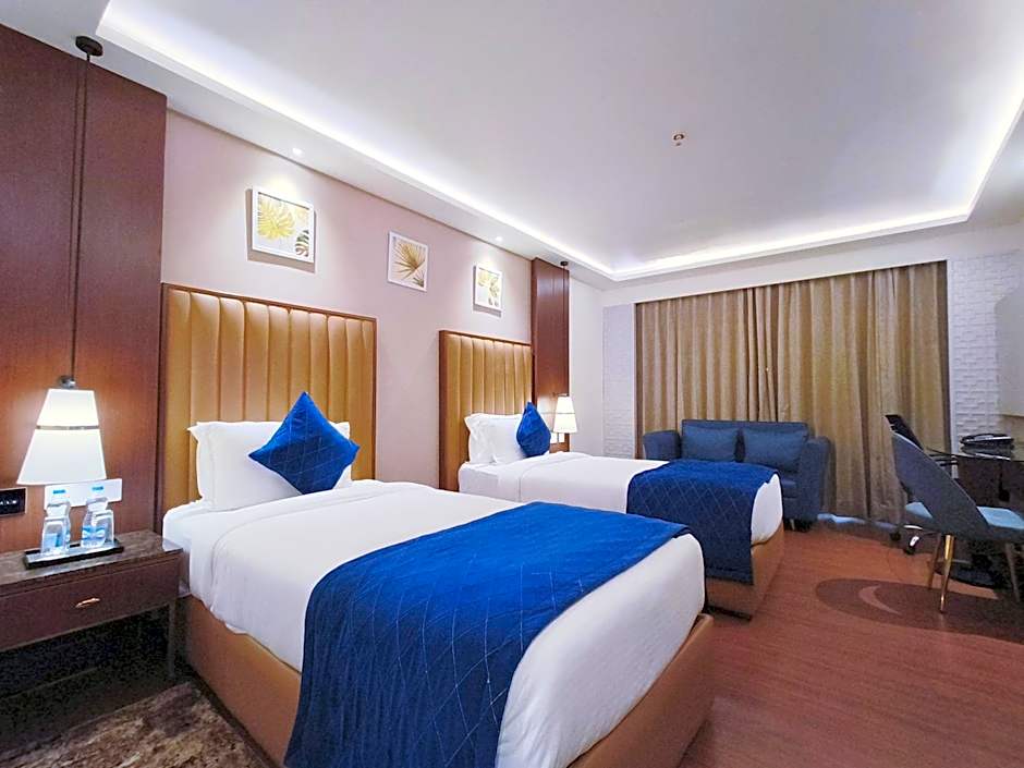 Featuring free toiletries and bathrobes, this twin room includes a private bathroom with a shower, a hairdryer and slippers. The spacious air-conditioned twin room features a flat-screen TV with cable channels, soundproof walls, a mini-bar, a tea and coffee maker as well as city views. The unit has 2 beds.